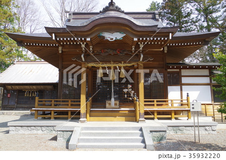 信州諏訪の神さま 手長(てなが)神社 拝殿正面縦 江戸時代の建築物のある神社