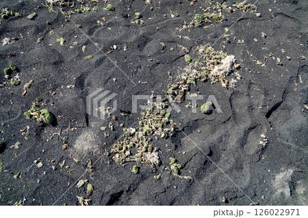 海岸砂浜の海洋プラスチックごみ漂着物の写真素材