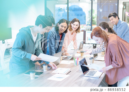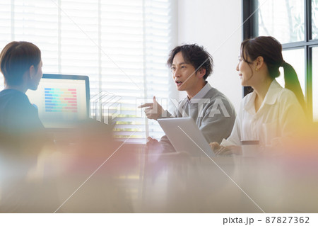 会議 チーム ビジネス ビジネスマン オフィス オフィスカジュアル