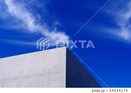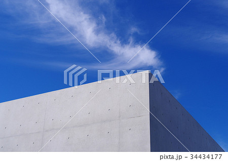 打ちっ放しのコンクリート壁と晴れた空 b-2 高彩度