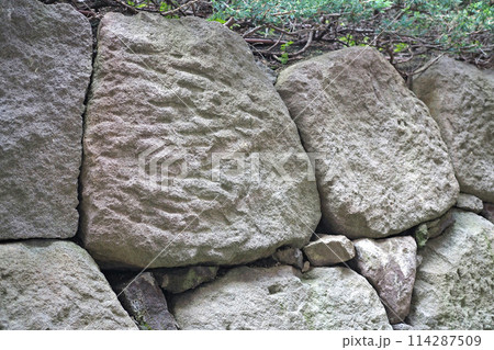 古くから続く農家の打ち込み接ぎの石垣 背景素材 テクスチャ