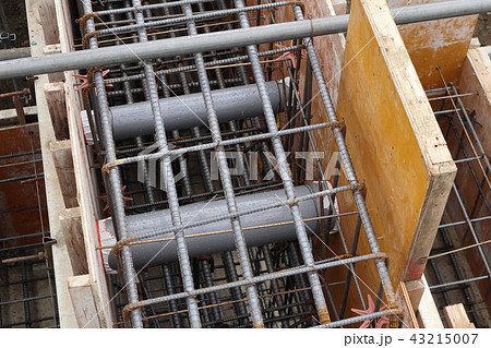 建築工事 コンクリート打設 棒形振動機 壁の打込み