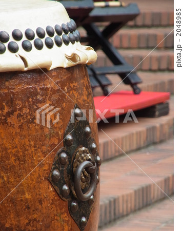ずらりと並んだ長胴太鼓。和太鼓。和楽器。成田太鼓祭にて。