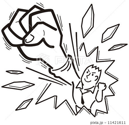 コンクリートの壁を壊して通り抜けるパンチ 壁を破るイメージイラスト