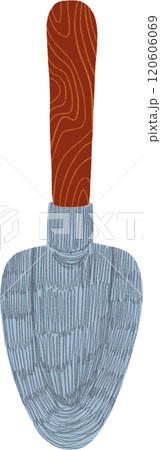 Cute Wooden Handled Garden Trowel, hand-drawn digital painting illustration