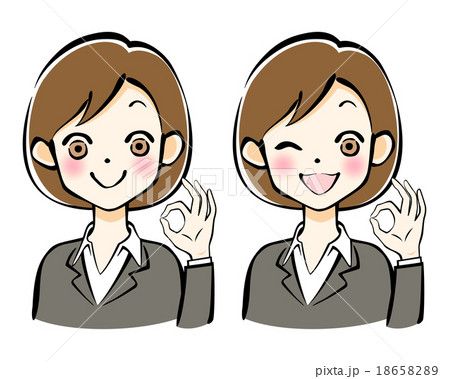 大人のビジネスウーマンがOKサインをするシンプルイラストセット