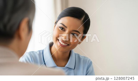 優しい笑顔をみせるフィリピン人介護士の女性のポートレート