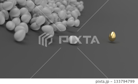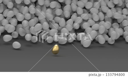 金のたまごCG 大量に転がる 人材流出イメージ パワーポイントタイトル レンダリングCG 背景