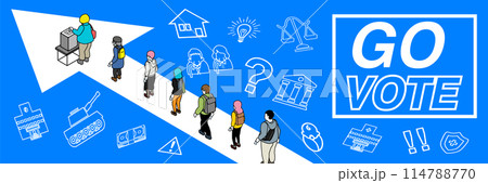 選挙 投票する人々 デザインレイアウト 横長