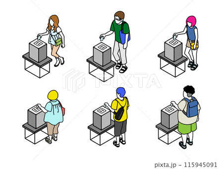投票する人々 アイソメトリック人物6点セット