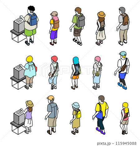 投票する人々 アイソメトリック人物セット 後ろ姿