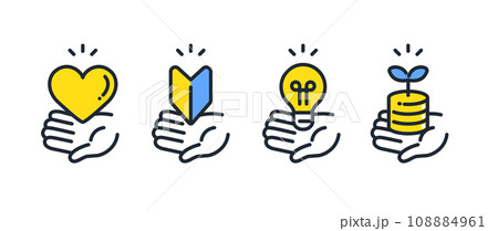 手・ハート・電球・初心者マーク・投資のシンプルなベクターアイコンイラストセット素材