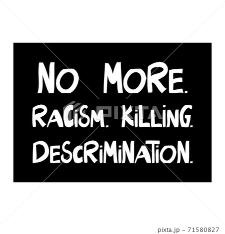 No more. Racism, killing, descrimination. Quote about human rights. Lettering in modern scandinavian style. Isolated on white background. Vector stock illustration.