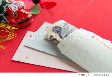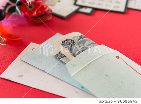 お年玉イメージ ポチ袋 (お金 入れ方 折り方)【アップ シンプル コピースペース】