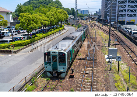 花畑踏切歩道橋からの眺め 引き上げ線を折り返した阿南行き普通列車2 徳島県徳島市