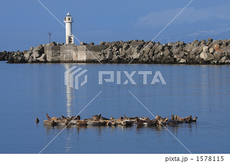 北海道稚内市・抜海港に越冬に集まったゴマフアザラシ