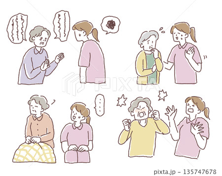 福祉、介護のお仕事(せん妄、暴言、介護拒否)、線画