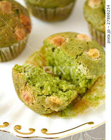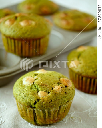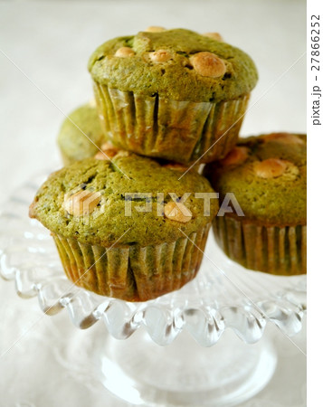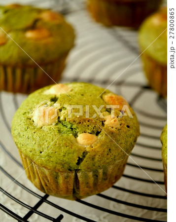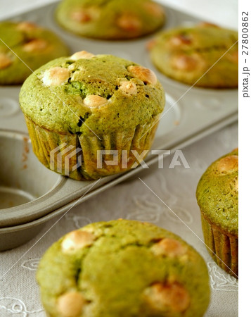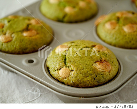 抹茶とホワイトチョコのマフィン 焼き上がり (横位置)