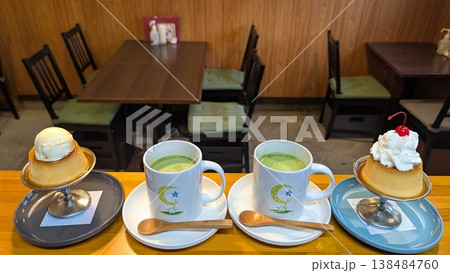 レトロなプリンとホットドリンク