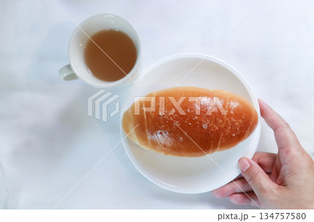Shio Pan, Salzstangerl bread or Austria bread or Japanese bread and hot tea