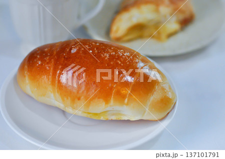 Shio Pan, Salzstangerl bread or Austria bread or Japanese bread with puff and hot tea