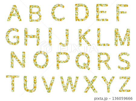 イニシャルフラワー A-Z アルファベットセット 押し花 花文字 ボタニカル 背景透過PNG