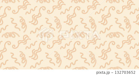 Seamless abstract pattern with wavy orange line on a beige background in doodle style.