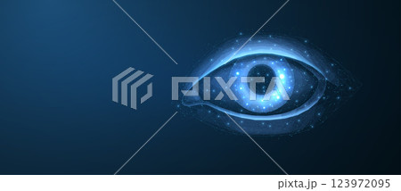 3D eye on blue background. Digital vision, ophthalmology health, face recognition.