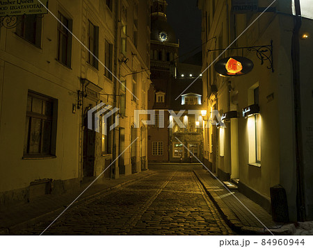 ラトビア 【リガ旧市街】夜の閑散とした路地 / Riga, Latvia