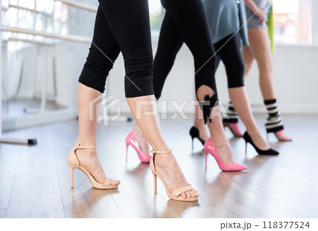 Women's legs in high heels in dance studio