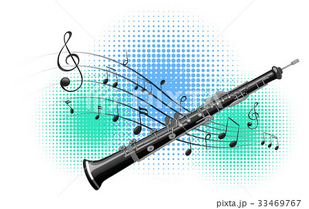 Flute with music notes in background