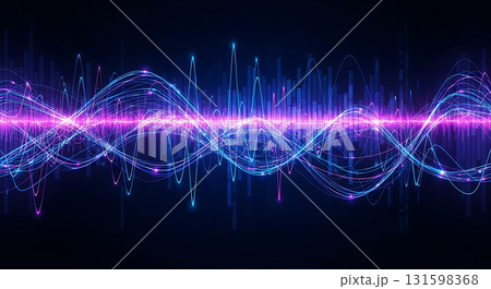 Abstract representation of sound waves with vibrant colors and dynamic visual elements showing energy