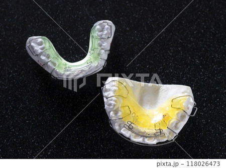 矯正装置(拡大床)を歯ブラシで磨く子供