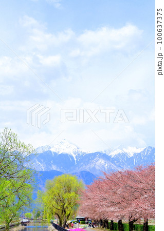 4月の安曇野 拾ケ堰公園の桜 美しき桜の花 花と植物が織りなす色紙
