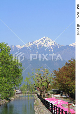 春の安曇野 拾ヶ堰と北アルプス 長野県安曇野市