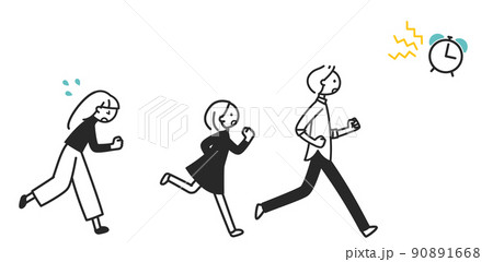 走る三人 ちまっとした白黒の人物