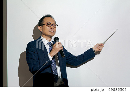 指し棒を持つ男性講師