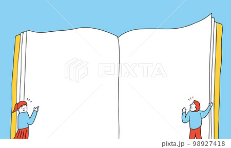 白紙の本・ノートのページを開く二人の女性 イラストフレーム