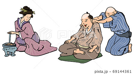 江戸時代の按摩師の浮世絵-肩もみ