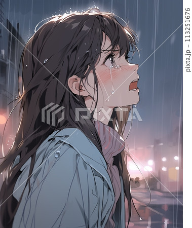 涙する女性イラスト・雨天「AI生成画像」