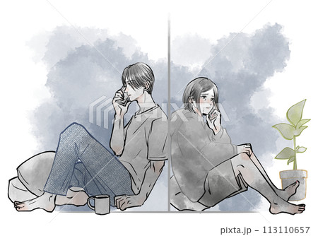 スマホで話している背中合わせの男女