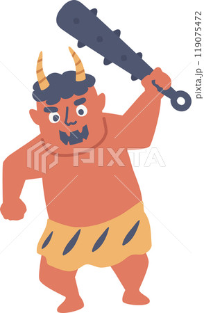 笑顔で金棒を持っているパステルカラーの赤鬼