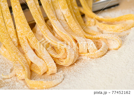 PCレンズを使用して撮影した生パスタのフェットチーネ