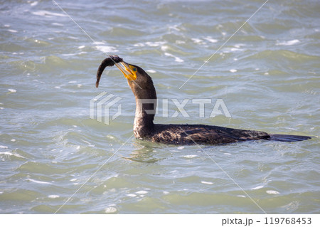 A striking moment of a cormorant catching fish gracefully in clear waters of the ocean