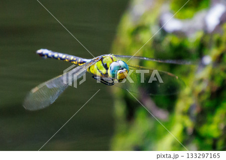 湖沼等の水辺を巡回飛行するギンヤンマの仲間のクロスジギンヤンマ