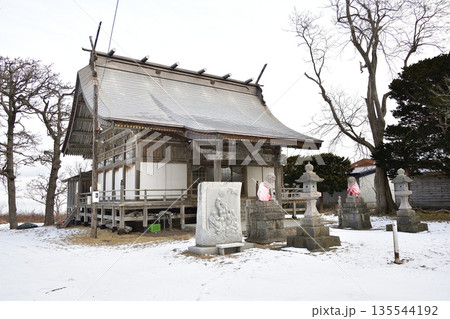 冬の北海道森町で掛澗稲荷神社境内の風景を撮影
