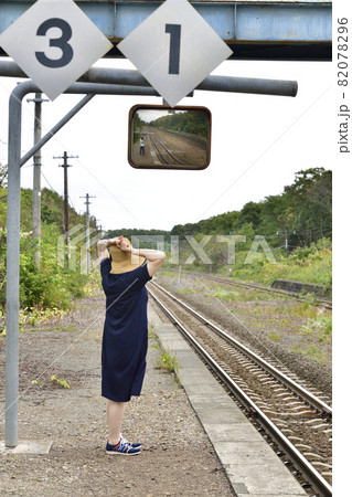 秋の北海道森町JR掛澗駅で女性のポートレートを撮影