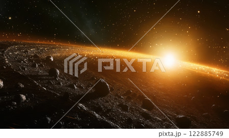 3D illustration Background for advertising and wallpaper in space and planet scene. 3D rendering in decorative concept.