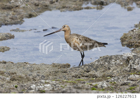 生き物 野鳥 オバシギ、体長は三十センチ弱。短い首と太めの胴体、嘴は長いほう