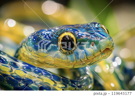 カラフルで綺麗なガラス細工のヘビ AI画像